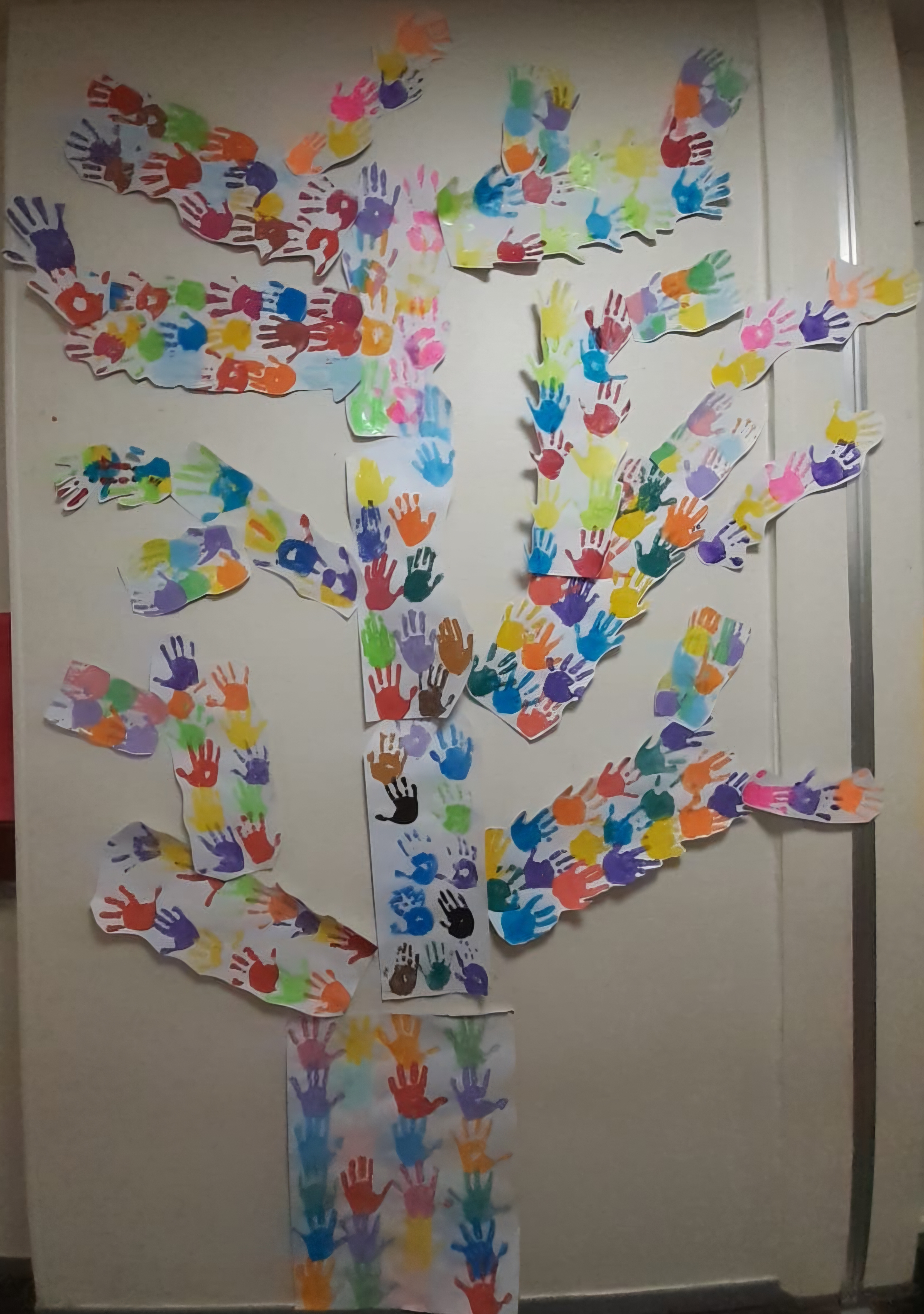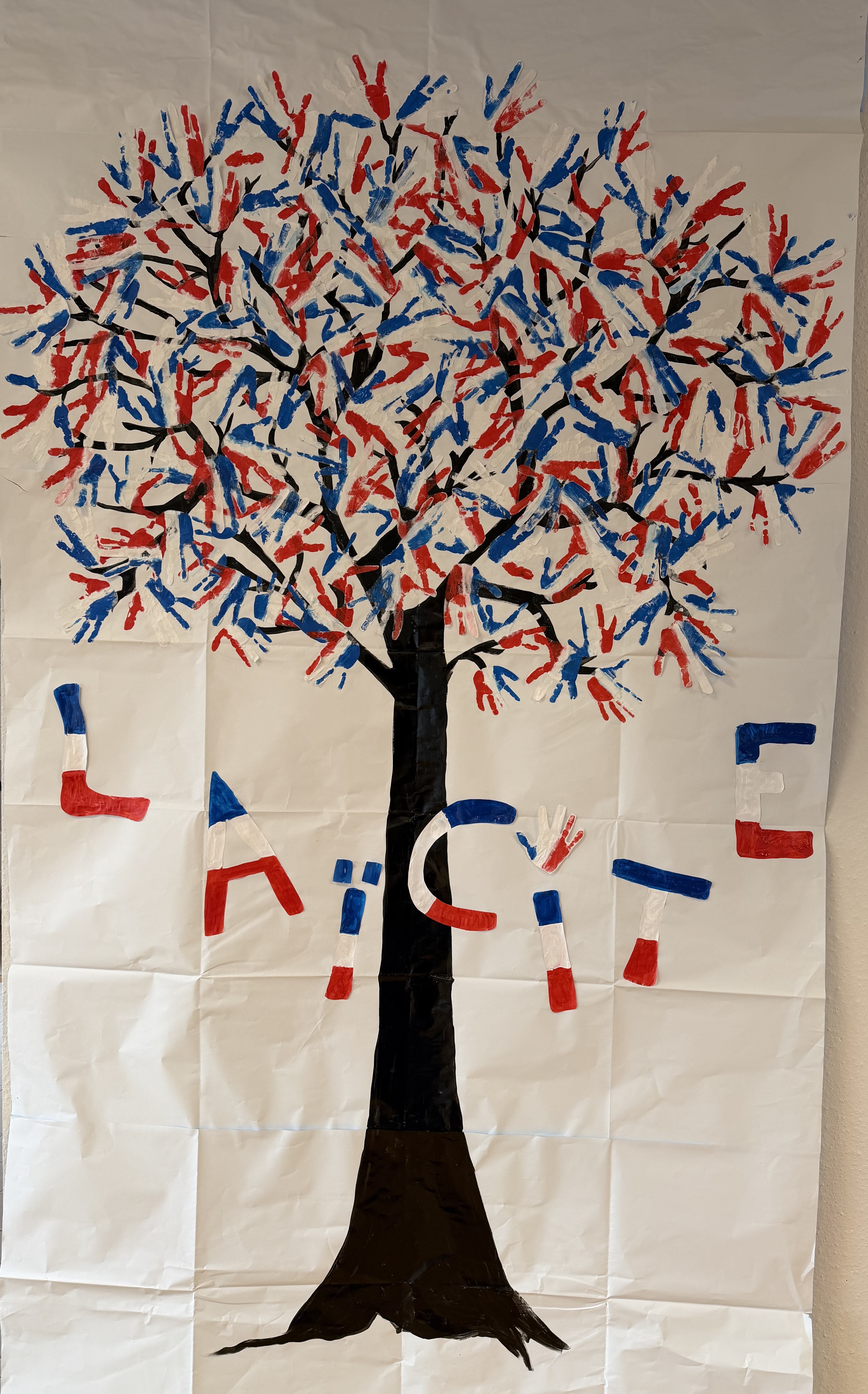 Arbre de la laïcité avec les mains des enfants et des adultes de toute l’école maternelle Blaise (...)